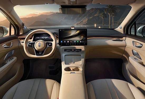 内饰布局简约精致,全系标配鸿蒙座舱,内置10.25英寸液晶仪表以及15.6英寸中控屏。空调出风口下方是HUAWEI Super Charge 50W无线快充面板,倾斜角度的设计相当合理,拿取手机十分方便。