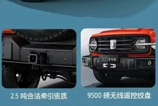 动力上,新车提供汽油和柴油两种动力形式,和常规版坦克300动力参数保持一致。值得一提的是,得益于2.5吨牵引钩、9500磅无线遥控绞盘的加入,新车将具备更多救援能力。